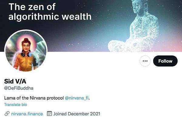 Nirvana团队还致力于营造一种独特的社区氛围。从“涅槃”这个极具佛教特点的名称开始,整个团队的宣发、治理都使用了很多佛教术语。除了官方推特账号外,Nirvana还有一个名为“Sid-DeFiBudda”的账号,称之为“LamaoftheNirvanaprotocol”,会发布一些夸张、抽象的项目动态。每周会组织“MeditationwithSid”环节,用来回答一些用户问题和更新项目动态。
