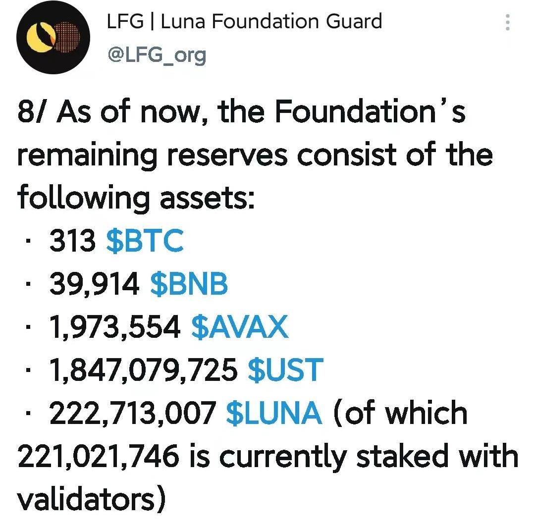 显然,对算法稳定币而言,其绑定生态越茁壮,其本身就越稳定,这自毋庸多言。除此之外,还要注意的是其管理基金会是否靠谱,其资产储备及规划是否安全透明。还用UST这个反面教材来说,截至5月17日,LFG手中只持有313枚BTC,而10天前的5月7日这一数字则是80394。也就是说,这笔充当“外汇”的BTC、本该用于救市的8万多BTC在语焉不详中已经消耗殆尽!还有大量的USDT、BNB等资金储备去向不明。Terra的治理显然让人大跌眼镜,他们并没有对外界准确的公布这笔钱有没有用于救市,如何用来救市的。