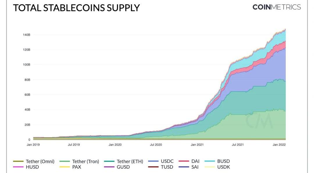 根据CoinMetrics上图的数据可以看出,2021年是稳定币发展最迅猛的一年,而2021年也恰好是各大公链迅猛发展的一年。