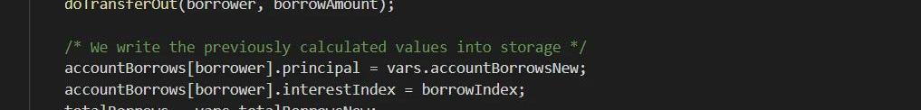 borrowFresh函数在发生借贷时是先通过doTransferOut函数转账,再记录最新变化