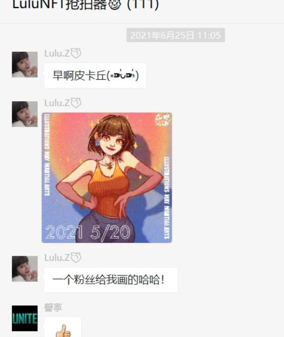 大家甚至在聊天中疯狂互发LULU.Z自己做着玩的表情包,作者、藏家与粉丝玩成一片。