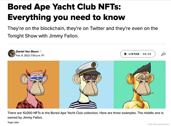 这里其实是来自于一个叫做「Bored Ape Yacht Club」。
