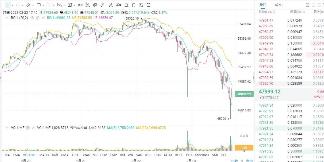 隔夜两位大佬言论不利比特币,连一向看好比特币的世界首富马斯克都认为价格太高了;而且美国财长耶伦也批评比特币,令比特币大幅走弱。导致今日跳水一轮接一轮,让投资者饱受折磨。