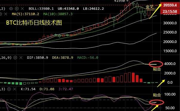 四小时上看比特币运行在上行通道之中,上方亦是沿着BOLL上轨而上行,一波冲高回落之后,币价依然强势持稳在均线之上,BOLL呈开口状态,均线MA5/MA10持续金叉向上运行,短线上重点关注38400-40500美元一带支阻情况。短周期KDJ技术指标缓和运行,附图MACD上行动能偏强,预计比特币将维持震荡上行走势。
