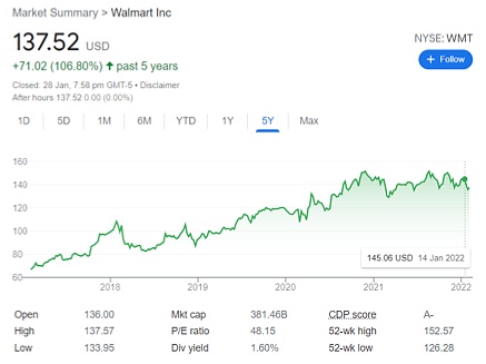 2020年沃尔玛收入为5230亿美元,净利润为152亿美元。
