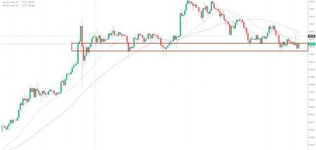 跟BTC一样,下跌段走势完成,底部磨底之后将反转。反转之后又将反复震荡,等待震荡完成,4H的均线系统和日线的缩量趋势完成,再上车。现在继续观望和等待,367将是一个强弱分水岭,现在看来,还是强的。下跌趋势没有形成,盘整趋势继续。