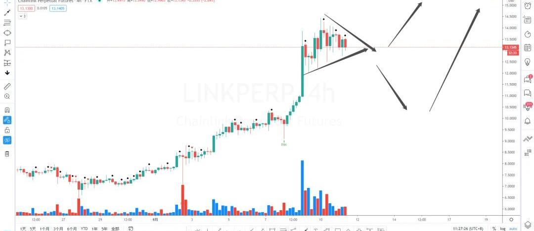而价格在08.02号的大阴线出现后却并没有空头力量的持续跟随,意味着此时更多的筹码集中在坚定持有者手中,低点的垫高是对空头力量增强的否定,原本的多头力量将大概率延续