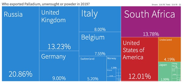 例如,世界上20%的钯金量的供应将消失。