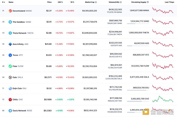 NFT总市值、市值排名前十项目 数据来源:Coinmarketcap
