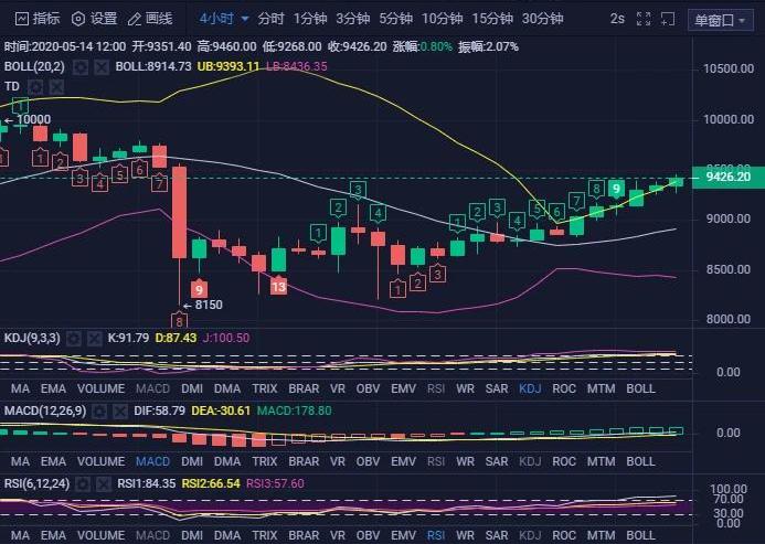 比特币今日早盘延续多头碎步上行遇阻9400小幅度回踩9250点附近,展开新一轮攻势,多头趋势不改,9400点是中期特别关键得点位,午盘已经突破,目前在9400附近震荡。