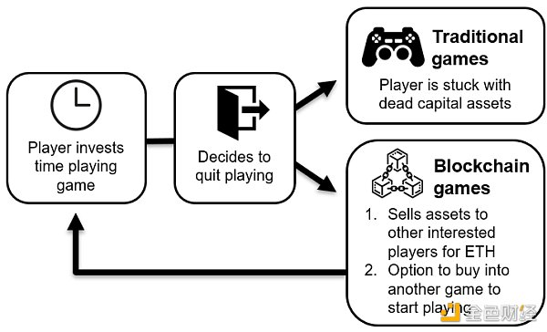 与游戏内货币供应和物品受开发者控制的传统游戏不同,区块链游戏允许玩家按照自己的条件在加密世界和法币世界之间自由创建、完全拥有和交换资产。 从“你交易我们说你可以交易的东西”到“一切都可以自由交易”的游戏经济的转变为玩家提供了一个机会,让他们从投入的时间和精力中获得利润——这就是“边玩边赚(P2E)” 。