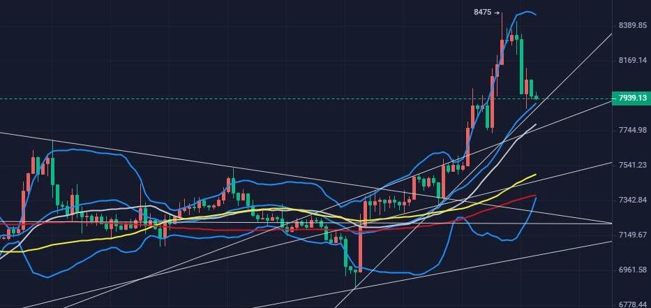 摘要:昨晚大盘继续快速拉升,部分山寨币涨幅惊人,比特币双底形态基本形成,剑指9000美元。短时出现回踩,后续需等待比特币站上200日均线,进一步确认长期上行趋势.