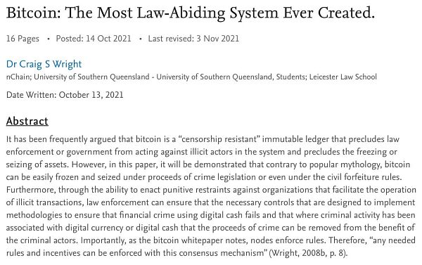 Wright博士甚至发表了一篇名为《比特币系统:有史以来最守法的系统》(Bitcoin:the most law-abiding system ever created)的论文。不过,社交媒体上仍有很多来自所谓的数字货币市场的人对Craig Wright博士恶意满满。如果有人因为倡导守法制度而受到攻击,这能告诉我们关于攻击者的什么信息?