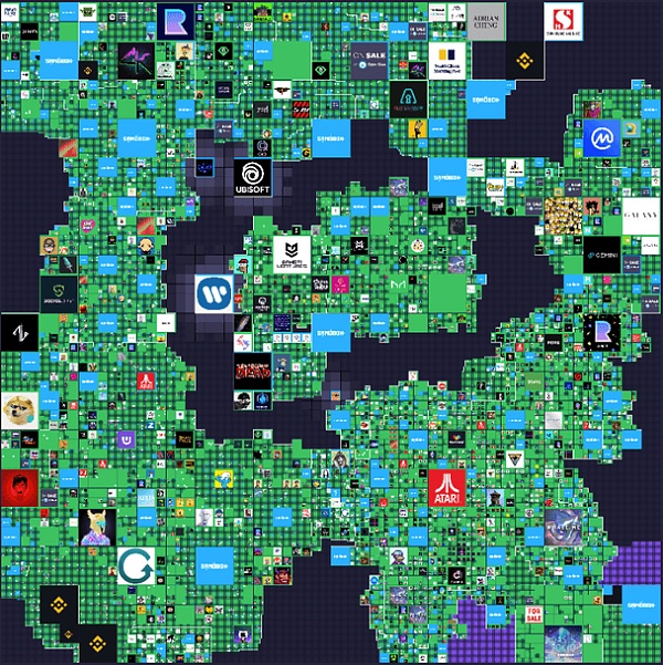 这种规模的土地覆盖了沙盒地图的12%以上,并拥有著名的持有者名称,包括Atari、Pranksy、Cyber Kongz、Binance(币安)、Ubisoft(育碧)、Socios、TWD、Gemini、Coinmarketcap、Meta Key、Republic Realm、华纳音乐集团和南华早报。