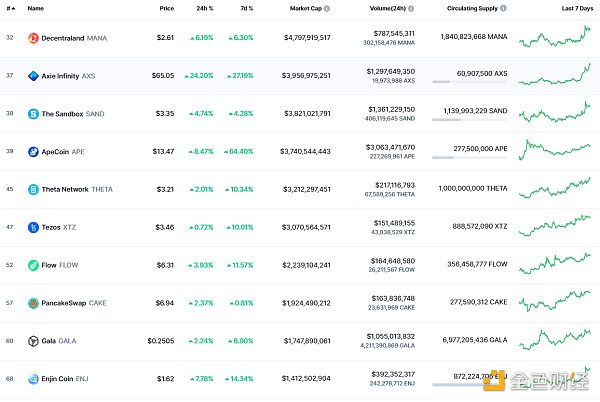 NFT总市值、市值排名前十项目 数据来源:coinmarketcap
