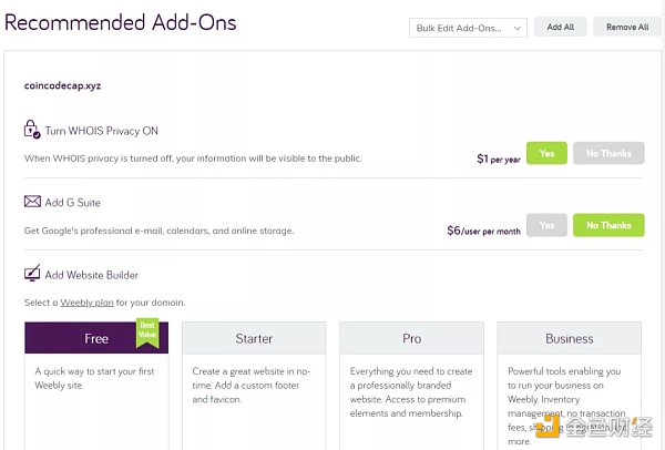 第 1 步:选择您要注册的域名。示例:coincodecap.xyz、blockwish.xyz 等