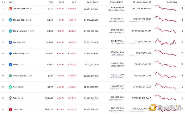 NFT总市值、市值排名前十项目 数据来源:Coinmarketcap