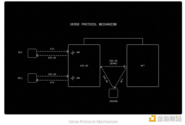 Verse协议使每个数字化物品都有一个嵌入式的、自主的交易所。从结构上看,这意味着通过Verse创建的每一个ERC-721 NFT背后都有一个基本的ERC-20市场支持。下面我们来具体分析一下它是如何工作的。