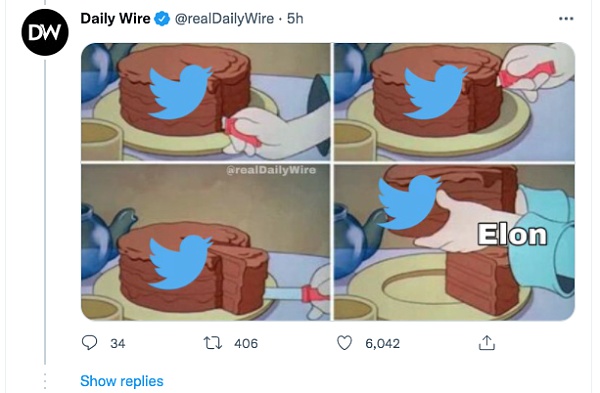 马斯克今天的恶意收购行为,让这张图看起来更像是现实,而不是梗图? ?来源:Daily Wire