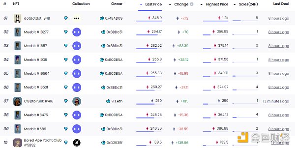 24小时内销售涨幅前十的NFT 数据来源:NFTGO