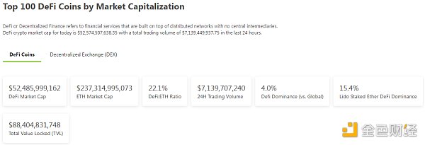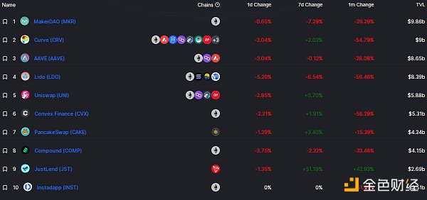 DeFi项目锁定资产前十排名及锁仓量 数据来源:defillama