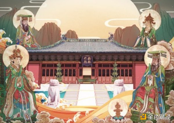 青年作者壹绘社以永乐宫三清殿上的壁画为主要灵感,通过现代插画和色彩技巧,通过更年轻化的方式将永乐宫的壁画现代“复刻”,展现出元代壁画之美。