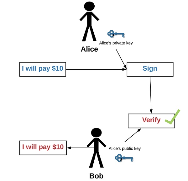 私钥为用户发出的每个区块链交易生成一个“数字签名”。签名通过以下方式确保真实性: