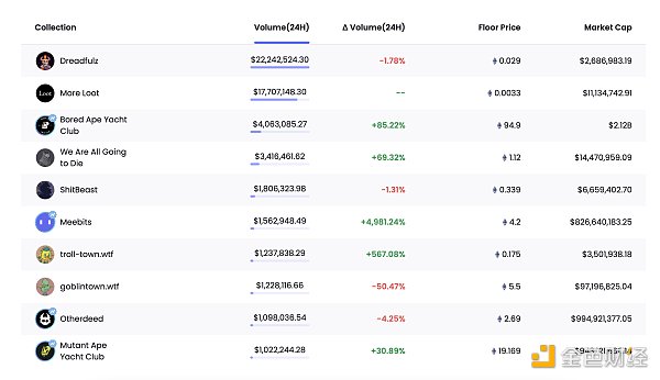 24小时内销售涨幅前十的NFT 数据来源:NFTGO