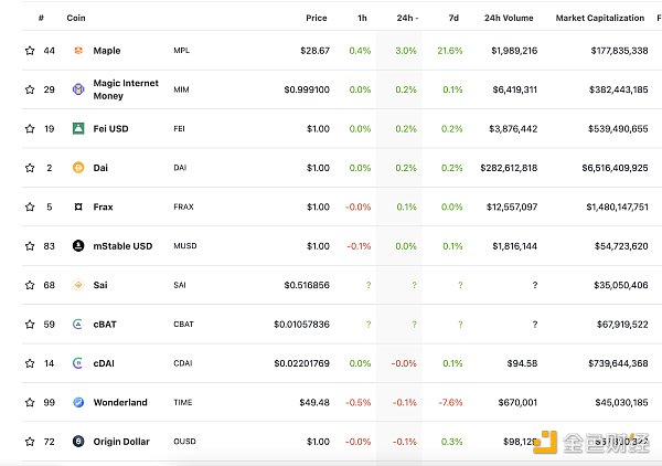 过去24小时去中心化交易所的交易量 数据来源:coingecko