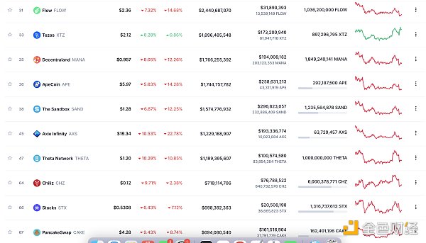 NFT总市值、市值排名前十项目 数据来源:coinmarketcap