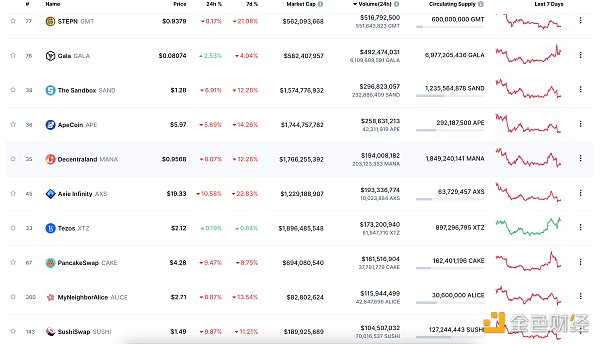 NFT总市值、市值排名前十项目 数据来源:Coinmarketcap