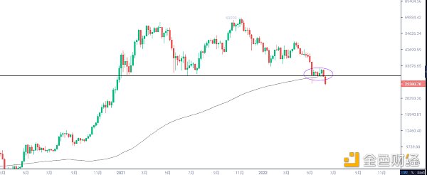 我们看前期熊底一般附图曲线需要修复至下方水平线以下位置才会见底,后面止跌拐头上行,BTC开始底部区间震荡,筑底后启动牛市行情,目前还有距离,并且BTC刚破位周线关键支撑,见底可能还需时间。