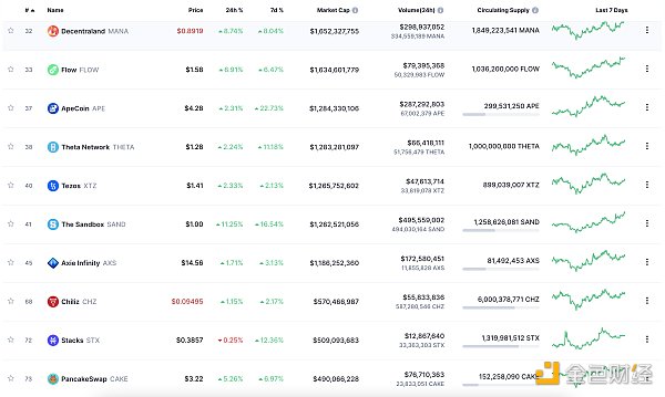 NFT总市值、市值排名前十项目 数据来源:Coinmarketcap