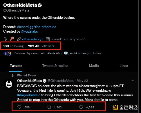 以下通过官方 Twitter 数据对 Otherside 和 Goblins 的社区力量进行的分析。