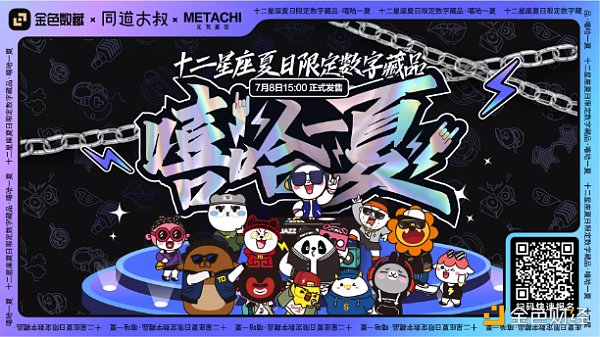 乏味的日常需要一点新浪潮?又有什么比嘻哈电音更刺激!金色数藏联合元気星空,携手知名星座娱乐头部IP同道大叔,共同发行同道大叔十二星座夏日限定《嘻哈一夏》数字藏品。本次发行的12款数字藏品,融合嘻哈电音元素进行创作,让十二星座变身嘻哈达人,掀起夏日热浪。7月8日15:00正式上线金色数藏平台,敬请期待!
