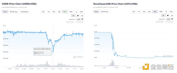 前有UST的崩盘,而上月中旬孙哥的USDD也经历了一定程度的价格偏离。