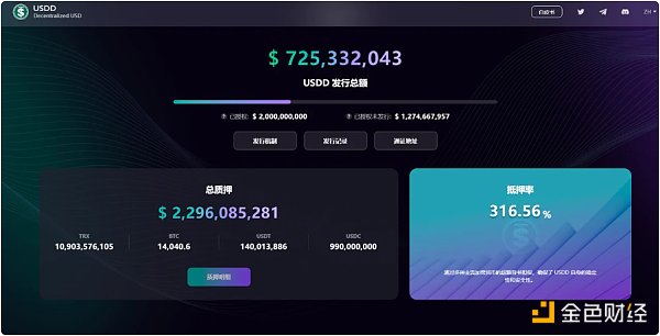 目前USDD的总发行量在7.3亿美金左右,而背后拥有BTC+USDT+USDC+TRX作为储备,其价值则高达22.9亿美金,抵押资产是发行资产的3倍左右。