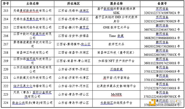 根据《区块链信息服务管理规定》,国家互联网信息办公室7月25日发布第九批共348个境内区块链信息服务名称及备案编号,其中包括北京网易传媒有限公司的网易新闻数字藏品馆、远光软件股份有限公司的链上链下数据交换平台以及中国银联股份有限公司的数字藏品应用服务平台等。