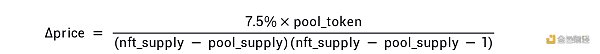 ERC721P 还有一个机制在于每次 Swap 都需要锚定价格 7.5% 的手续费,其中一半会手续费会进入合约增加 NFT 的锚定价格,另外一半手续费则会打入社区国库,用作 NFT 的持续运营,比如 ChainLink 的预言机续费,项目空投等等。这个机制的出现,NFT 的持有者越晚退出,退还的代币越多,所得到的回报越高。同理,当池子中有 NFT 可以 swap 出来,越早兑换,所需要的 Token 越少。 详细公式如下: