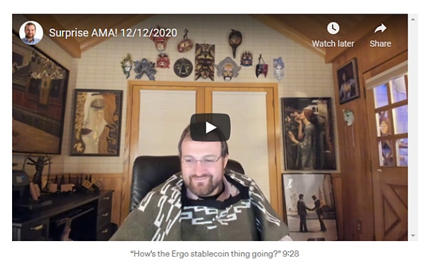 https://youtu.be/GlVU8ZiVUL0(9:28 “Ergo稳定币搞得怎么样了?”)