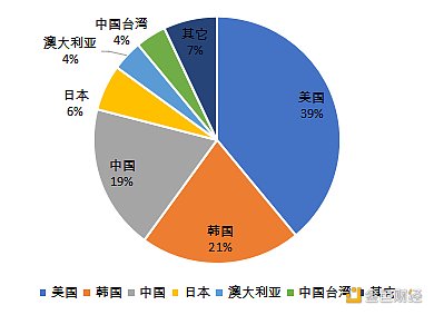 2020年,新冠疫情带来的全球不确定性和不信任度的提升,推动了区块链技术的研发投入。据中国专利保护协会《2020年区块链领域全球授权专利报告》显示,从不区分虚拟货币、公有链和联盟链的口径来看,截至2020年5月,区块链领域在全球范围内共有3924件授权专利。其中美国占39%,韩国占21%,中国占19%。