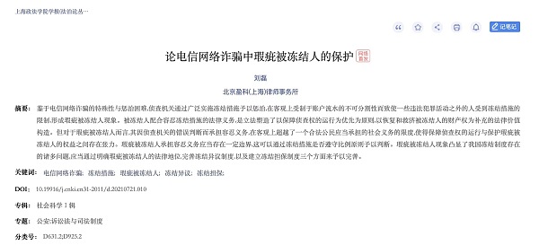 摘要:鉴于电信网络的特殊性与惩治困难,侦查机关通过广泛实施冻结措施予以惩治,在客观上受制于账户流水的不可分割性而致使一些违法犯罪活动之外的人受到冻结措施的限制,形成瑕疵被冻结人现象。被冻结人配合容忍冻结措施的法律义务,是立法塑造了以保障侦查权的运行为优先为原则,以恢复和救济被冻结人的财产权为补充的法律价值构造。但对于瑕疵被冻结人而言,其因侦查机关的错误判断而承担容忍义务,在客观上超越了一个合法公民应当承担的社会义务的限度,使得保障侦查权的运行与保护瑕疵被冻结人的权益之间存在张力。瑕疵被冻结人承担容忍义务应当存在一定边界,这可以通过冻结措施是否遵守比例原则予以判断。瑕疵被冻结人现象凸显了我国冻结制度存在的诸多问题,应当通过明确瑕疵被冻结人的法律地位,完善冻结异议制度,以及建立冻结担保制度三个方面来予以完善。