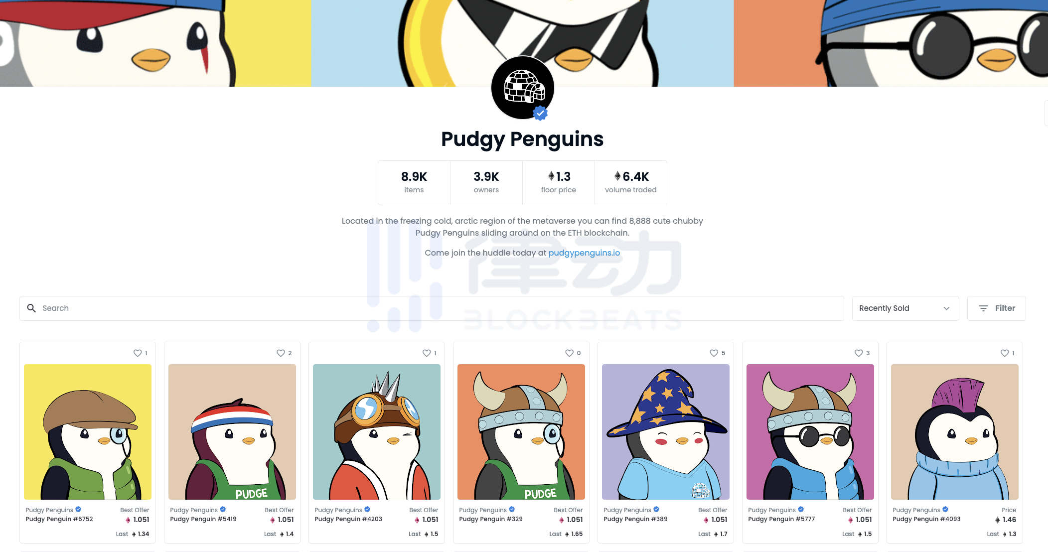 这里所谓的中心化存储,便是将元数据存储到一个中心化的网站服务器里,并在元数据中保存指向该网址的链接。下面以这两天爆火的小企鹅项目为例。