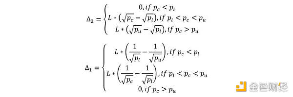 在新版本 V3 中,由于在不同价格区间的流动性密度不同,需要对每个同一流动性密度的小区间单独计算。当跨过区间边界时,需要的下一个区间做类似计算。