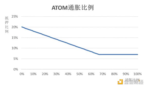 $ATOME 采用的模型是通胀增发型,增发率在7%~22%,具体的比例根据当前Atom Staking的数量。当Stake数量大于整体Atom总量的1/3时,增发率为7%,小于1/3时,增发率为20%~22%。