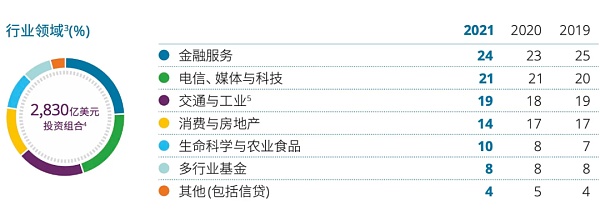 据淡马锡公开资料显示,截至 2021 年 3 月 31 日,淡马锡投资组合净值为 3810 亿新元:在金融业的投资占 24%,电信占 21%,交通运输占 19%,房地产占 14%,其它占 22%。