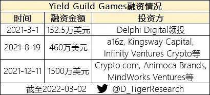 YGG目前已披露的融资有三轮,共2092.5万美元。其代币$YGG在2021年7月上线,曾在SushiSwap MISO平台上进行IDO,募集到了1250万美元。