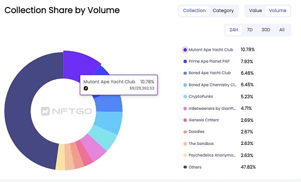 不同系列的NFT市值占比(截止2021.12.29)数据来源:nftgo.io?