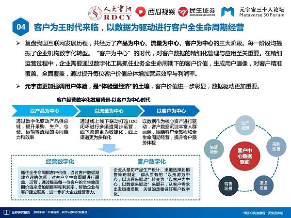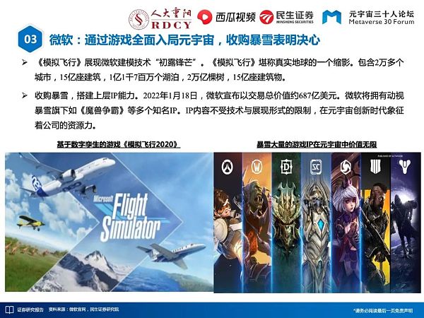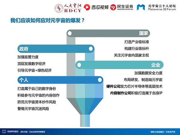 2021年元宇宙横空出世,成为资本市场的兴奋剂、学术界的热议焦点。然而元宇宙究竟如何改变我们的生活方式,又能带来哪些新的机遇?这些问题众说纷纭,我们仿佛看到了一个伟大的时代即将到来,但依旧是“雾里看花”,仅能隐隐得看到一个“轮廓”。但我们坚信,未来不是预测的,而是创造的。通过深度数据梳理与反复逻辑推演,民生研究院联合人大重阳金融研究院、抖音西瓜视频,元宇宙30人论坛联合发布了虎年第一篇230页《2030年的元宇宙产业》深度报告,希望同各位一起,迎接下一个“沸腾新十年”。
