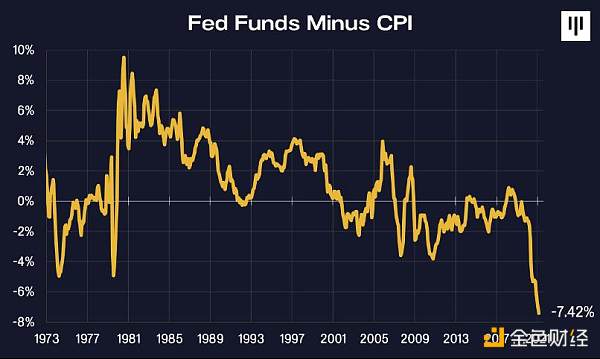 实际利率——通胀后的利率——为负 5.52%,为 50 年来的最低点。 没有经济理性的投资者会购买一些每年都会损失那么多钱的东西。